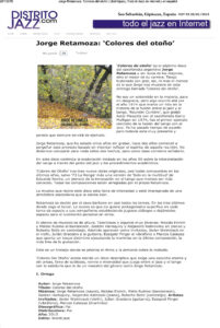 ‘Colores Del Otoño’ acaba siendo un disco descriptivo que exige una escucha atenta y sin prisas, lleno de sutilezas, nervio e intensidad que juega entre el jazz y el tango con la sabiduría que le da un maestro del género como Jorge Retamoza.